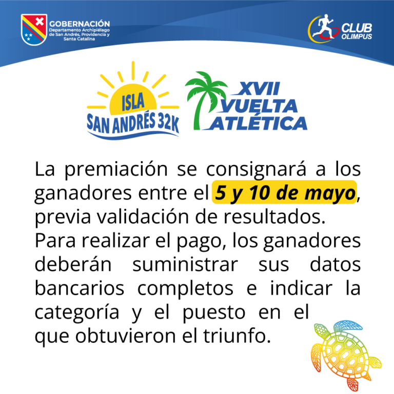 Solo disponibles para Residentes de San Andrés con tarjeta OCCRE y para Atletas Internacionales que reservaron cupos.